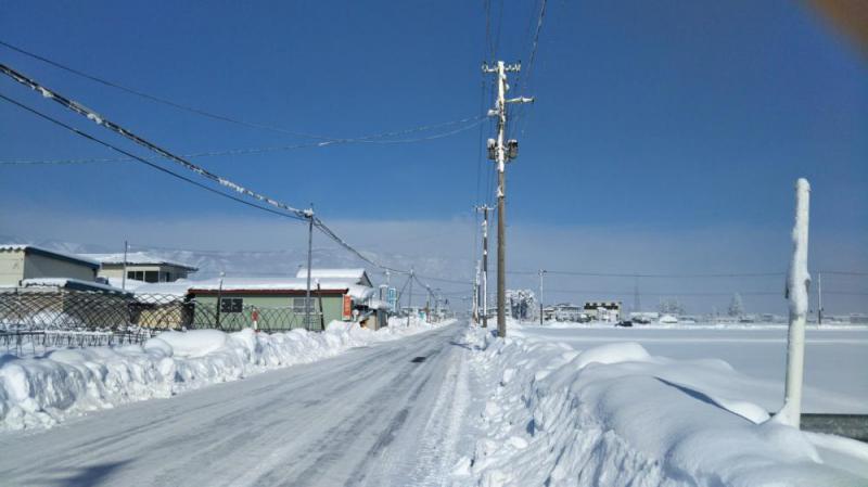 青空ですが、とても寒いです。道路はつるつるです
