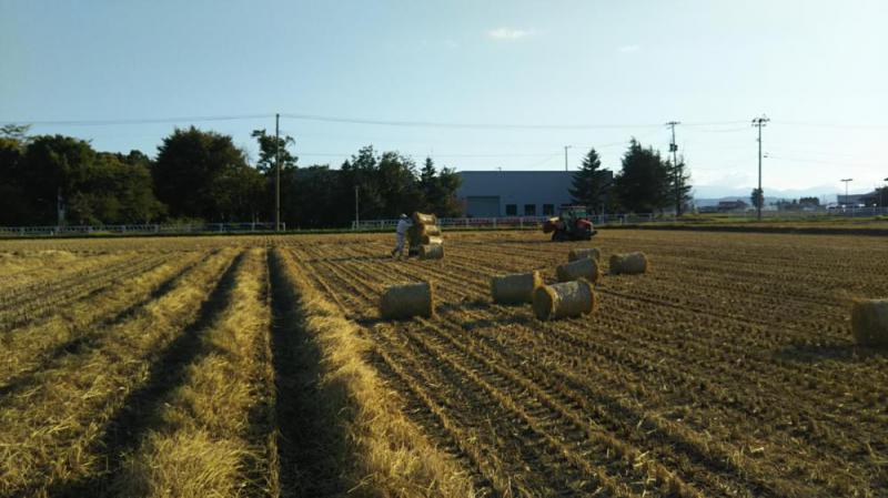 稲刈りが終わった田んぼから藁を集め牛の餌にします。