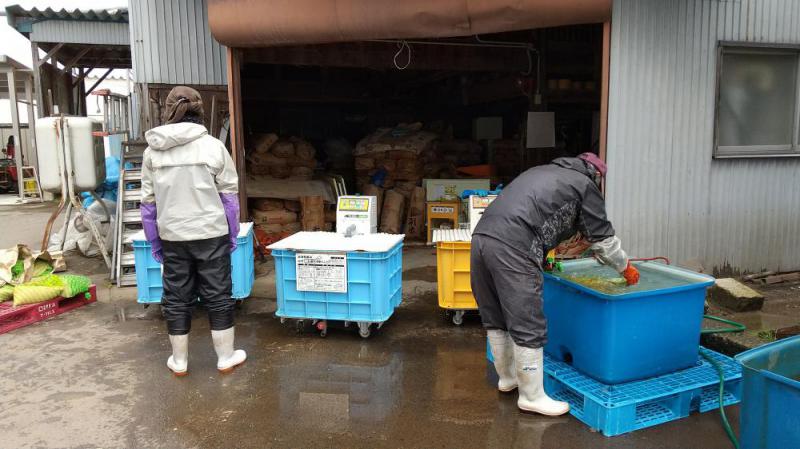 米作りスタートしました。先ずは種子消毒から、60℃のお湯に10分間浸し冷水に浸ける。この作業を温湯消毒といいます。