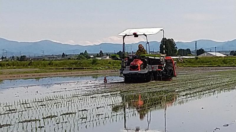 昨日から田植えしています。田植え機に屋根付けてみました。今のところ何の効果があるのかわかりません。