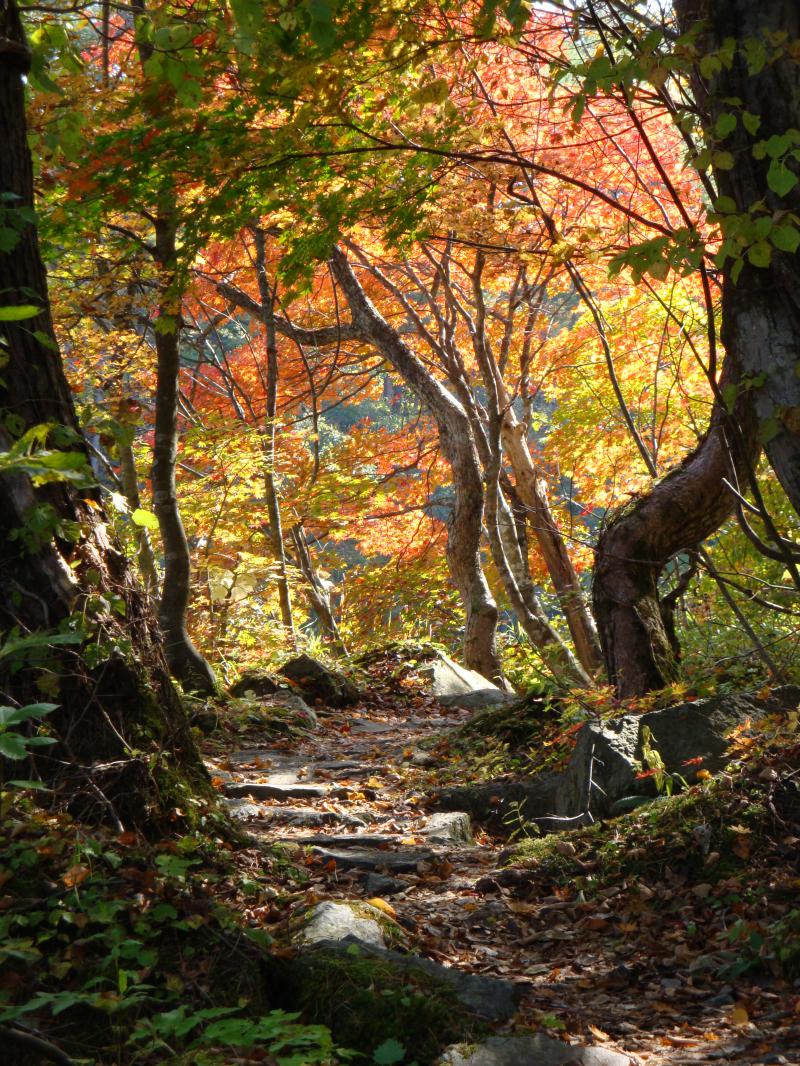 決して美しいとはいえ木を折ったり葉を取ってしまうことは、あまりにかわいそうだと思います。マナーを守って楽しい紅葉狩りをお願い申し上げます。木漏れ日のなかマイナスイオンをたっぷり浴びて、ゆっくり歩を進めていただく。そんな遊歩道がここにはあります。
