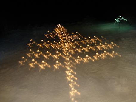 終えた営業スタッフ総出でガーデンにクリスマスツリーを描いてみました!