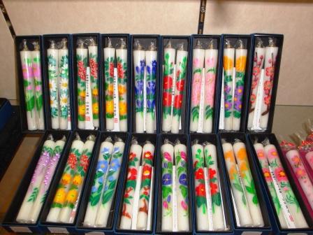 雪国会津では花の咲かない季節が非常にながく、厳冬期は仏壇に花のかわりに花の絵を描いたろうそくを供えていたようです。