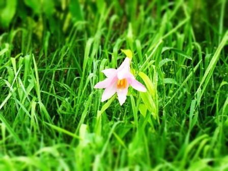 今朝はそんな雨の中ひそかに咲いていた、姫小百合です。