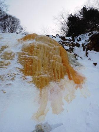 厳冬のこの時期、磐梯山の北壁に姿を現す「イエローフォール」が