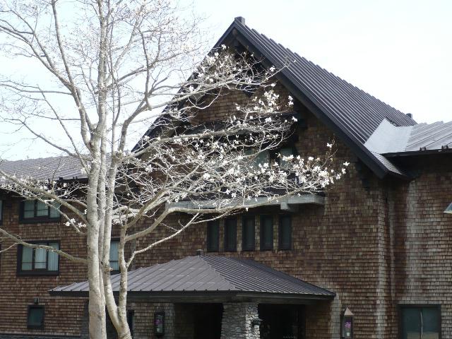 春にふさわしい純白の花ですね。写真はホテルの玄関前と裏庭に咲いたこぶしですが、これを見るとようやく裏磐梯にも春が来たんだなと感じます。あわせて桜が咲くのもあと少しだなと楽しみになってきます。