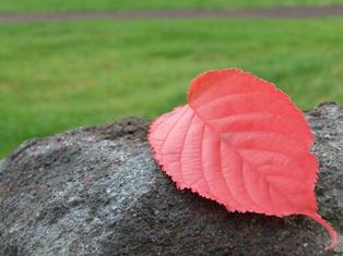 大山桜ともみじの葉が、うっすらと化粧をしております。