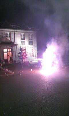 写真は↑、桑島記念館炎上、ではないですよ。花火をしてました。スモーク効果もまた、新しいです(^^)