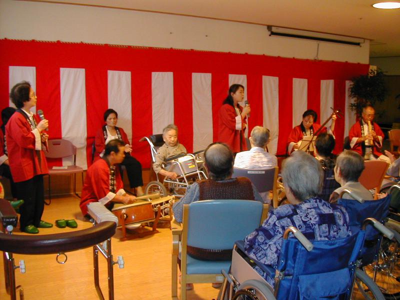 本日、私の所属する民謡会で、老人ホームの