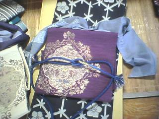 アタシの長着と麻の帯に、Sさんの帯揚げと帯締めをコーディネート(仮)♪