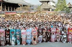 『1000人を超える振り袖姿の女性らで埋め尽くされた大通寺境内(長浜市)