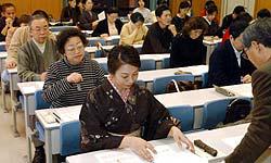 画像)着物通を目指して、初の「きもの文化検定」試験に挑む受験者(京都市伏見区・龍谷大)