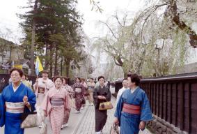 ←画像:2006年5月に企画され、秋田県仙北市角館町を訪れた「和みの旅」。着物姿で武家屋敷の周囲を散策する参加者の皆さん