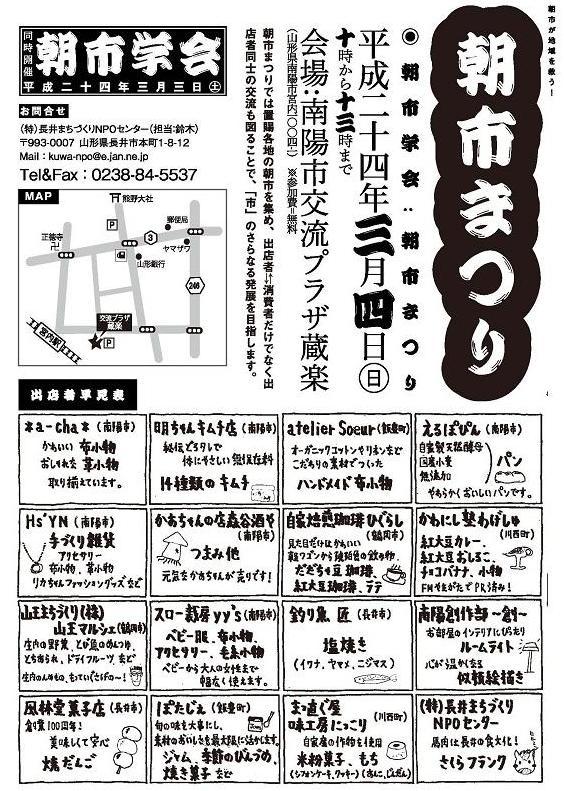 3月4日@南陽市蔵楽にて行われる朝市まつりのご案内です。