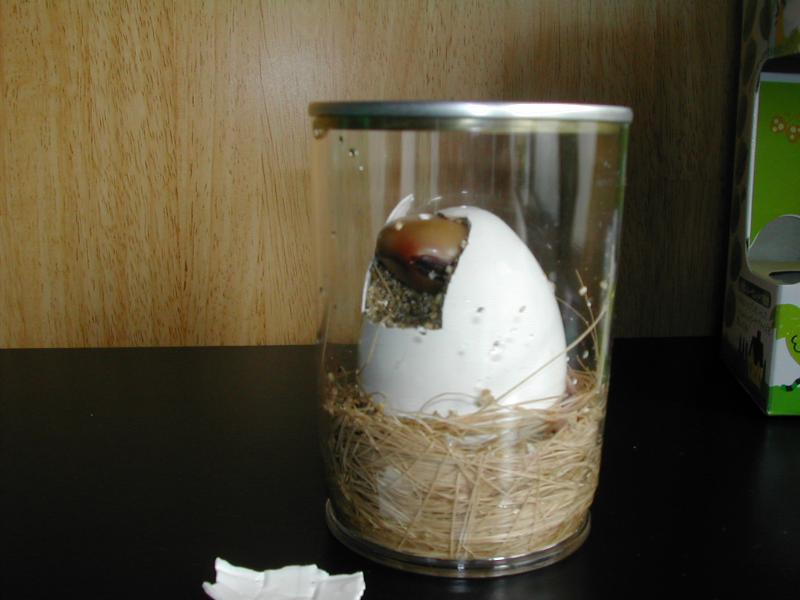 たまごを大切に育てると、中から、メッセージが刻まれた豆が出てくるって言うやつ。透明な缶に卵が入ってて、そこに水を入れて、うちの場合は、約1時間で卵が割れて、芽がでてきました。