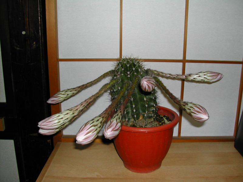 うちの月下美人が、つぼみを八つもつけました。