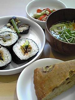 ・巻き寿司(きゅうり、かんぴょう、卵などとアボガドとえびのサラダの2種)