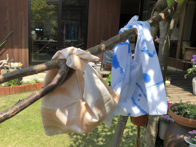 柿渋で布を自由に染めて、それをちくちく縫って、あずま袋を作ってみましょう!