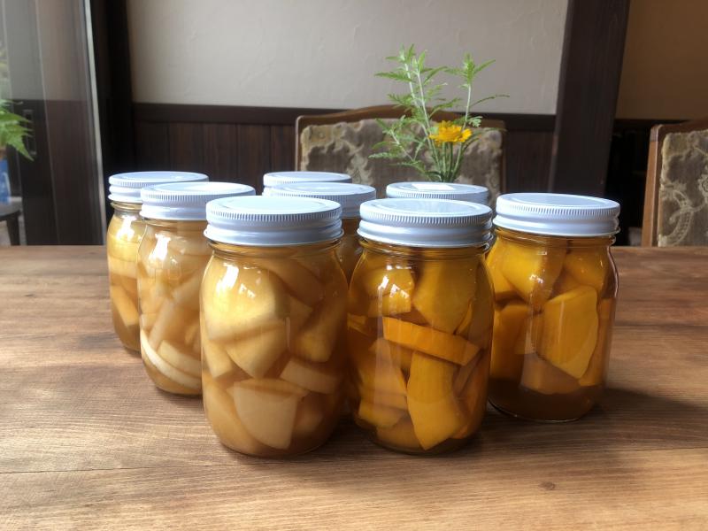 今回はアップルビネガーとてんさい糖などで、新鮮な大根とコリンキーを漬けました。
