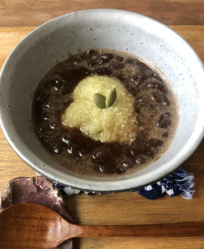 まだ寒い季節にほっこりメニュー。有機もちきびのぜんざいです。