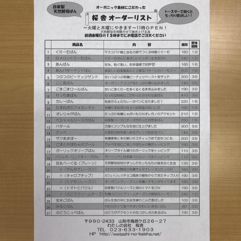 桜舎ではオーダーリストを作成しました。