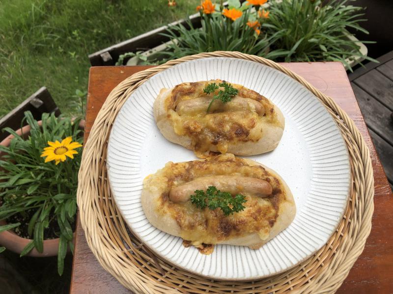 本日水曜日お惣菜ぱんの日は、新作「鶏ウインナーの焼きチーズカレーぱん」をご準備してお待ちしております。