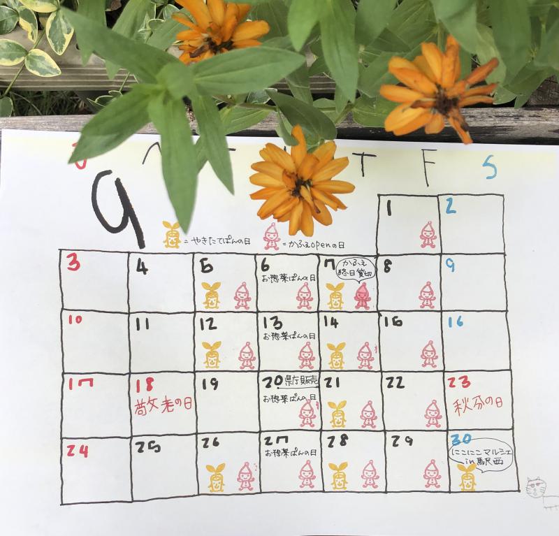 9月営業日カレンダーです。 残暑が続きますがご自愛ください。
