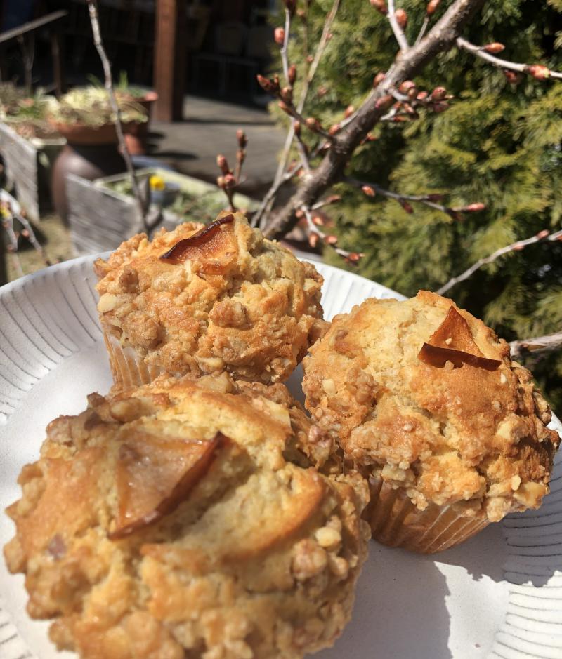 大江町果実の森スズキさんのりんごをつかった「りんごのクランブルマフィン」新発売です。