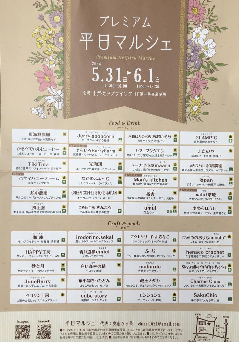 明日5月31日(金)ビッグウィングにて行われる 『プレミアム平日マルシェ』に参加させていただきます。