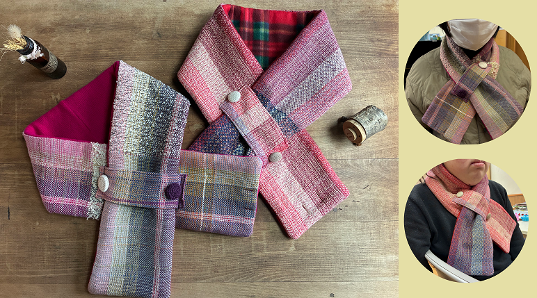 利用者さんが織った手織りを使った、ネックウォーマーが新しく登場です!