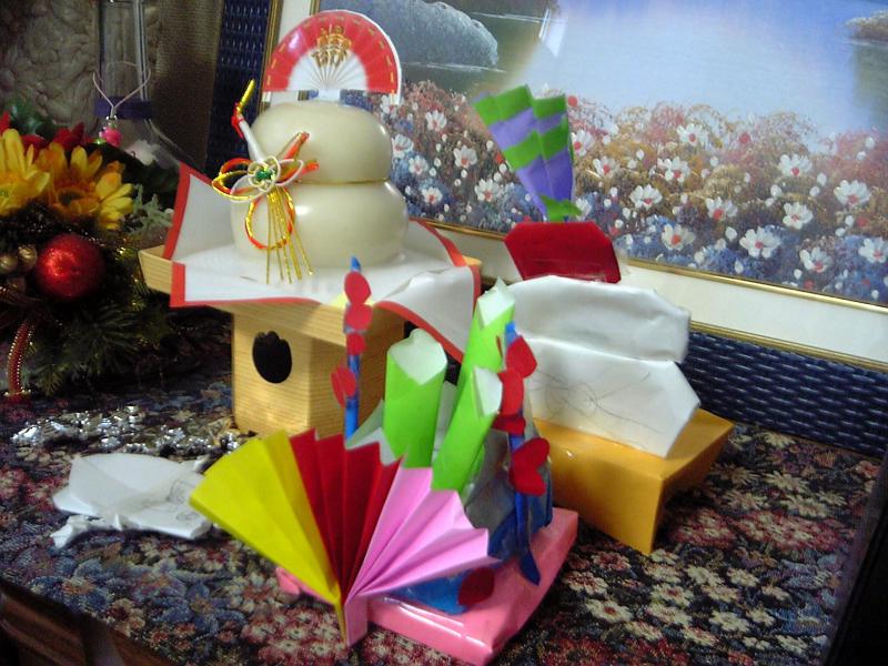 写真は、9歳の娘が作った「門松」と「鏡餅」。