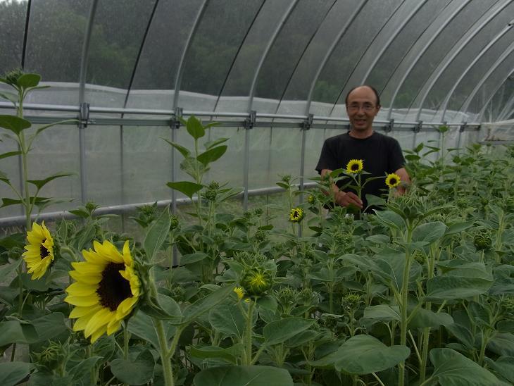 近々出荷されるひまわりを見せていただきました。