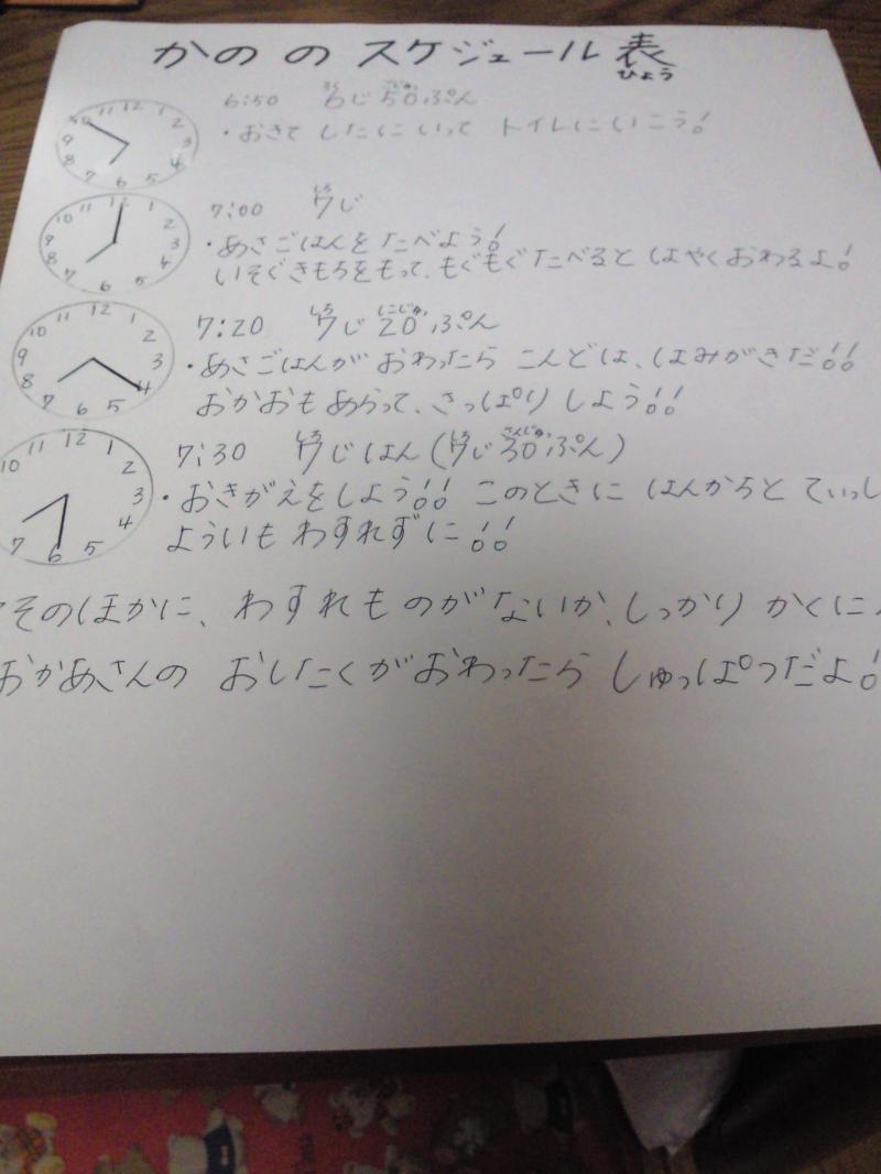 そこでこのスケジュール表で時計の見方と何時までに何をこなせばいいのかを
