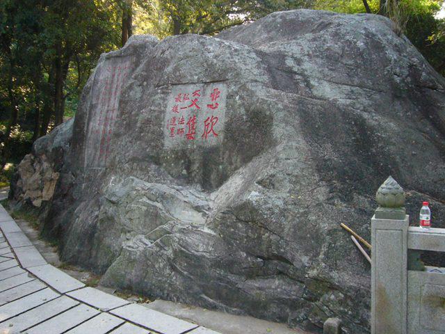 ▼弘一法師の書を岩に刻んでいます。