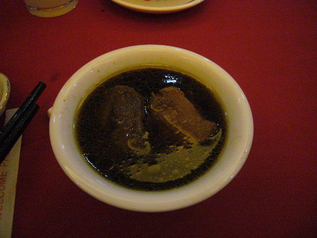 ▼鴨肉の薬膳料理と鴨の血を固めたものです。