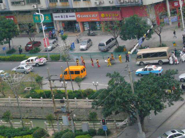 大通りにも関係なく、爆竹を撒きます。交差点の角には交番がありますが、関係ないようです。やはり神聖なんでしょうね。