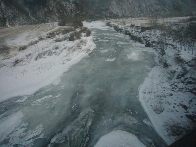 川は、完璧に凍っています。。実は、車も通れるんです。