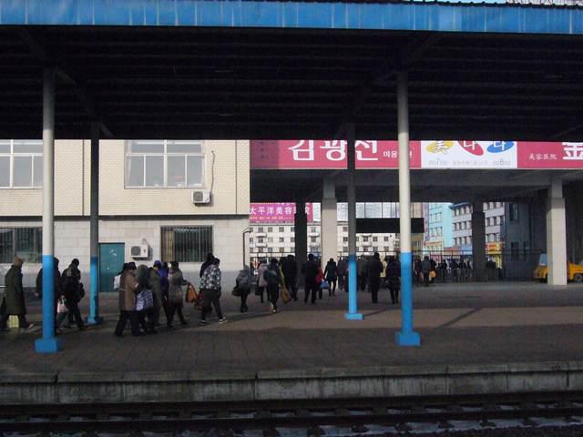 みんな寒いので急ぎ足です。朝鮮族の街らしく ハングルが街中に一杯です。