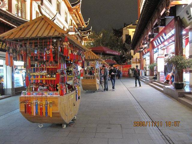 老街:通路中央に出ている屋台のみやげ物屋さんです。