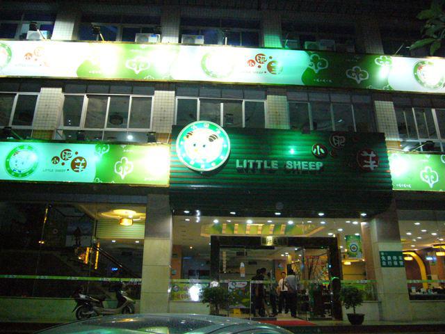 写真は、ささやかな歓迎会のお店で渋谷、赤坂、新宿、札幌等日本でも7店舗進出しているしゃぶしゃぶ屋さんです。羊とついていますが、牛も豚もあり、この町にも3店舗あるとても美味しいお店です。とても人気のある店です。小肥羊:シャオピンヨウといいます。