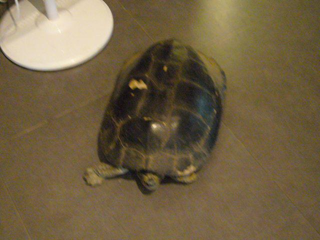 食堂に入ったら通路に亀の置物だと思っていたら生きていました。。
