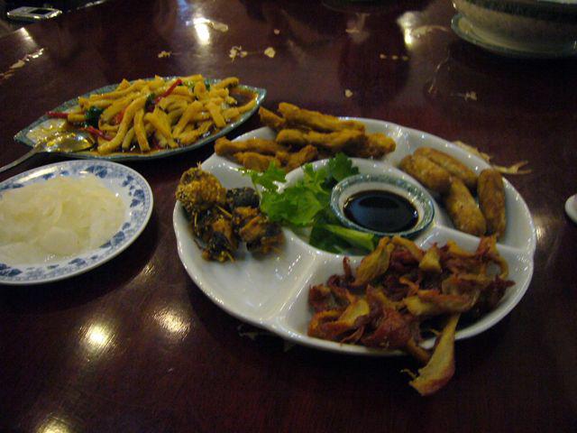 今回は精進料理です。観音斎というお店です。肉や魚に見立てて食感も作った料理で、今も中国のお坊さんは、女性や肉食を絶って仏道に精進しています。