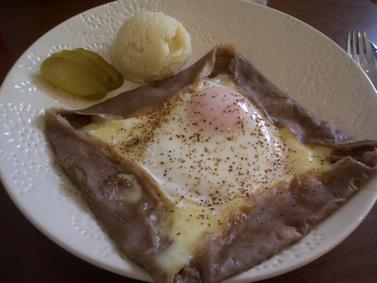 丁寧にドリップされたコーヒーがとても美味しく、写真の「そば粉のガレット」は絶品です!もちもちっとしたクレープに、ハムとチーズと半熟卵、ブラックペッパーが効いて絶妙な味わい。