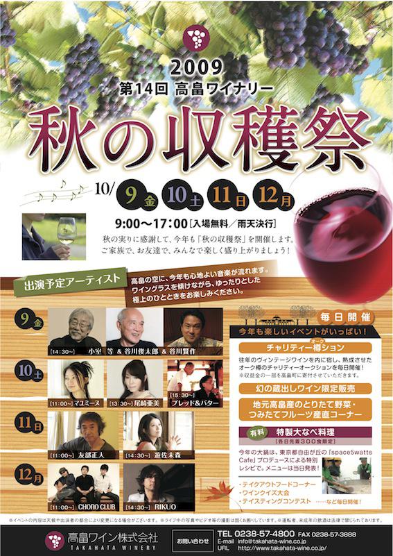 ▼高畠ワイナリー秋の収穫祭で、CHORO CLUBのライブがあります。