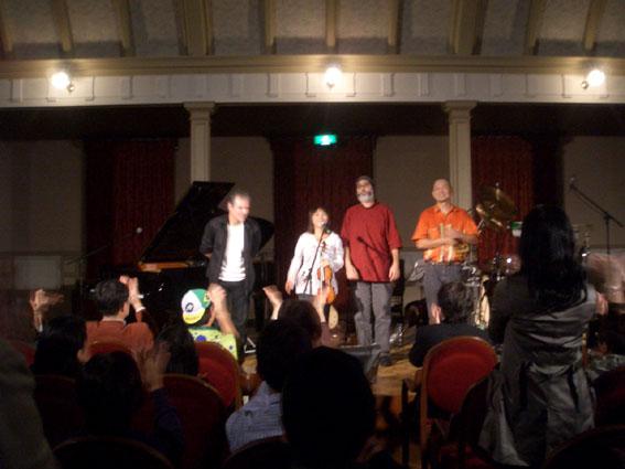 最後の曲に近づくにつれ、まだまだ終わらないで欲しい・・・って祈ってました。最後はみんな一緒に割れんばかりの大拍手!そして、スタンディングオベーション。おかげでアンコールが2曲も。数あるツアーの中でもそうあることではないらしいです。決して多くはなかった観客の気持ちが通じたんですね。メンバーの皆さんもとても演奏しやすかったと喜ばれていましたから。それを聞いてまた感動でした。