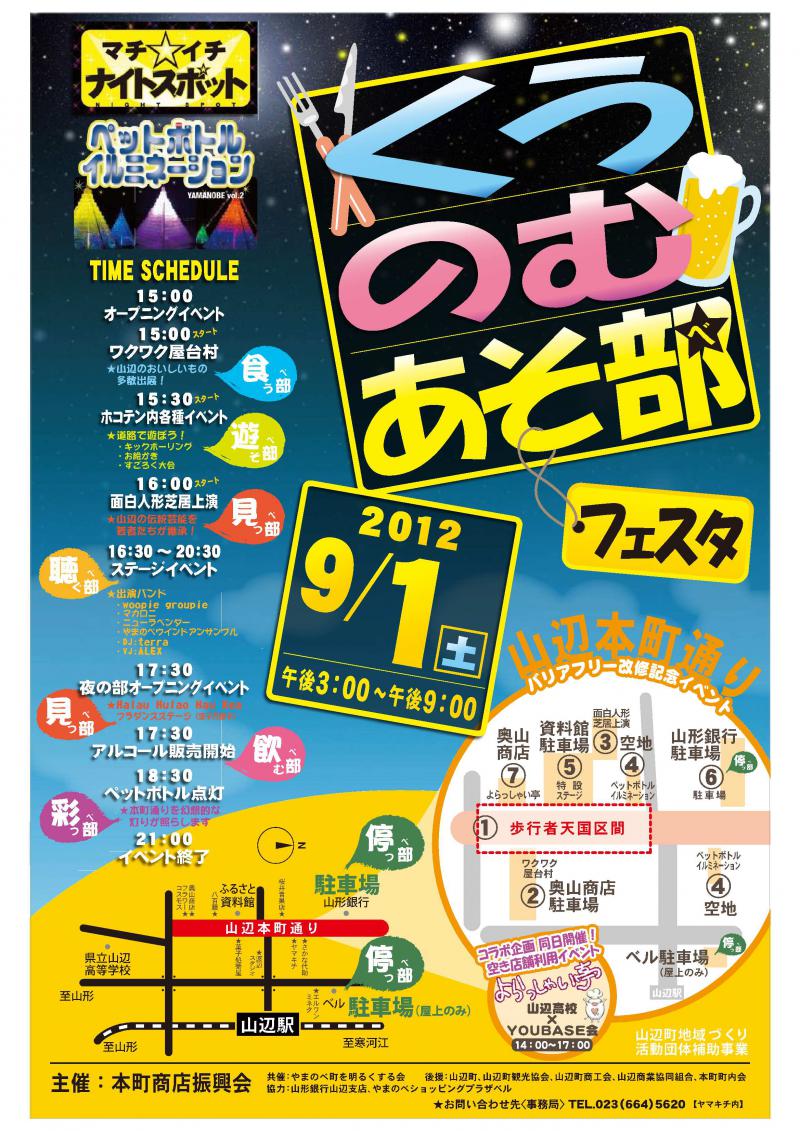 9月1日(土)山辺本町通りにおいてバリアフリー改修記念イベント「くう☆のむ☆あそ部フェスタ」が開催されます。