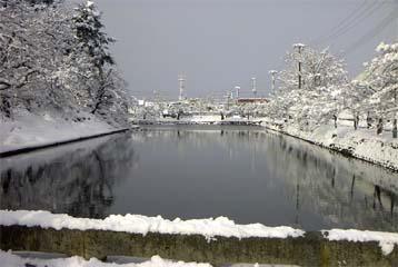 ▼冬の上杉神社の堀の様子