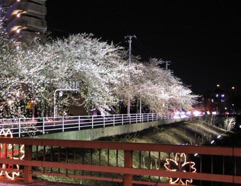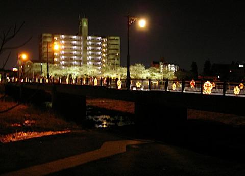 馬見ヶ崎市民プール(ジャバ)の橋もライトアップされています。