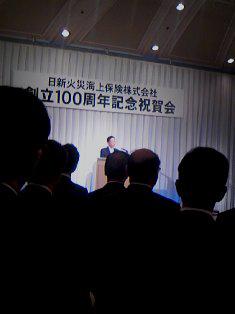 昨日は日新火災の創業100周年記念パーティーが都内で開催されました。全国から代理店が集り会場いっぱいでした。日新火災の歴代の役員の皆さんも出席しておられました。けっこう皆さん変わぬご様子に感心したところです。パーティーの後、代理店仲間と居酒屋に行き取り組みの状況についてじっくりと話しました。こちらがこれからの目標としていることを既に実現している人がいて刺激的でした。