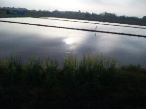 写真は朝の散歩の時の風景。「水を張った田んぼに写る太陽」
